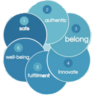 To summarize "unless we feel safe, we can't be authentic. Only when we are authentic, we can truly belong." Belonging is also made up of other elements. It is to feel safe, authentic, belong. It is to innovate, have fulfillment, and then it leads to well-being.