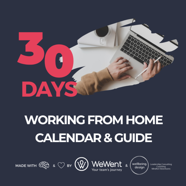 To make it easier for you and your team, the wellbeing.design and the WeWent teams got together to prepare a 30-day calendar with tips and ideas that might inspire you to become more content and efficient in this new reality. We believe that even when this period is over, the world of work will not be the same again and many new tools and skills will be used. Let us enable you for the present and future.